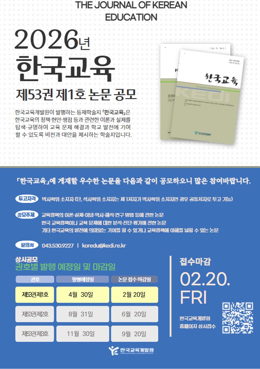 | [한국교육개발원] 등재학술지 한국교육 제53권 제1호 공모 | ||||||||
